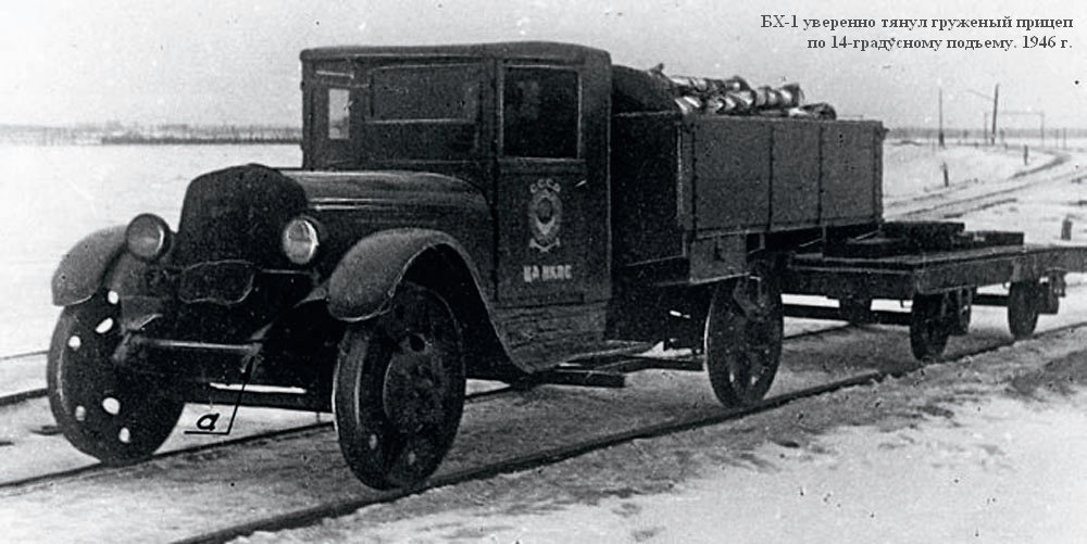 В СССР сразу после войны в 1946 году был реализован проект автомобиля для движения по грунтовым и железным дорогам БХ-1. Новое транспортное средство было названо по фамилиям его изобретателей Бондаренко и Хоровича, которые, видимо, были знакомы с британской разработкой и тоже назвали свою машину рорейлером. За основу был взят грузовик ЗиС-5В странноватого вида - с деревянной кабиной и упрощенной конструкцией рамы, но с еще довоенными штампованными крыльями и с довоенным же кузовом. Вероятнее всего, что его просто собрали из двух машин.