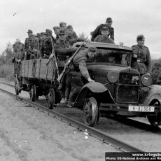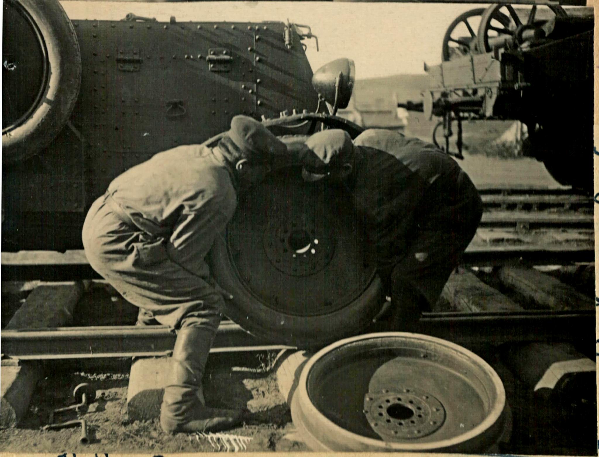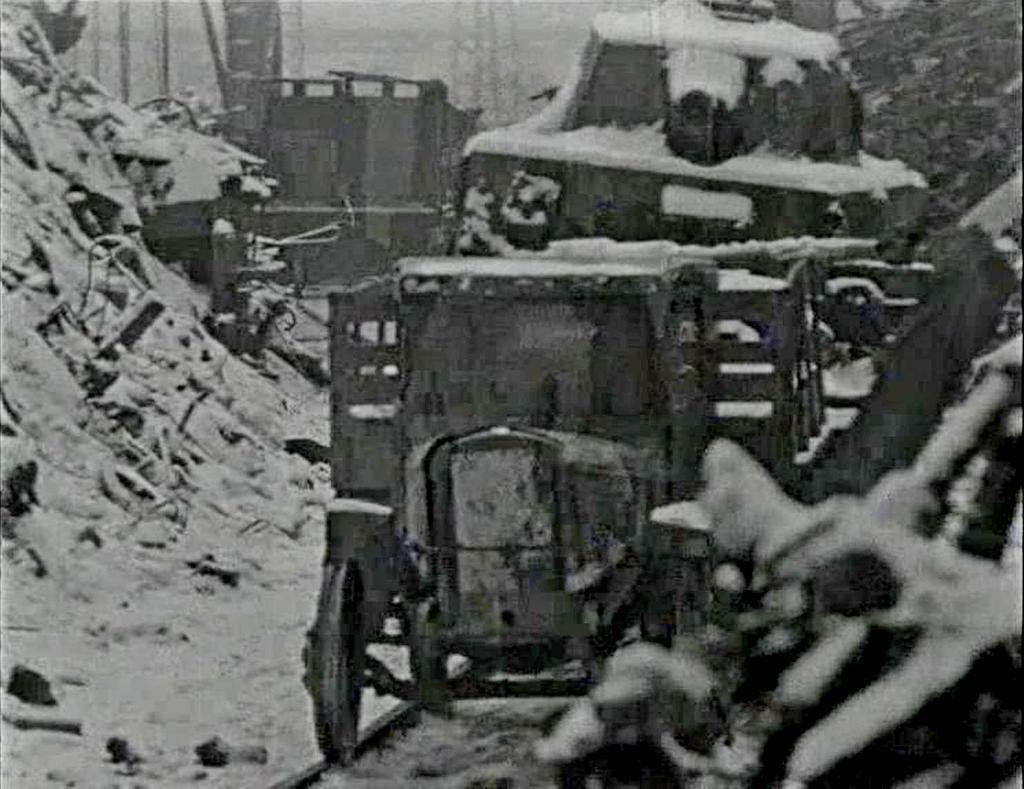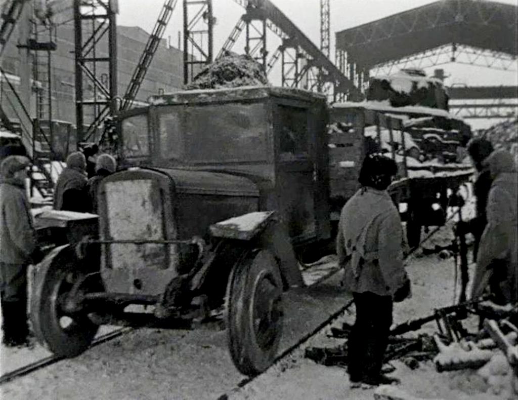 «В ходе дальнейшего продвижения частей 48-й армии грузы со складов армейской базы на станции Пироговка отправлялись в войска автомобильным транспортом. Плечо подвоза достигло 200 км, и дальнейшее его увеличение крайне усложняло подвоз. Рекогносцировкой было установлено, что железнодорожный участок Новгород-Северский — Семеновна протяженностью 58 км до моста через р. Ревна разрушен незначительно, на нем остались две двухосные платформы грузоподъемностью по 16,5 т. Локомотивов не было ни одного. Чтобы хоть немного облегчить работу автотранспорта, в качестве локомотива приспособили грузовой автомобиль ЗиС-5. На диски его колес вместо резиновых баллонов надели металлические бандажи. Вертушка из двух платформ заменяла более 10 автомобилей».