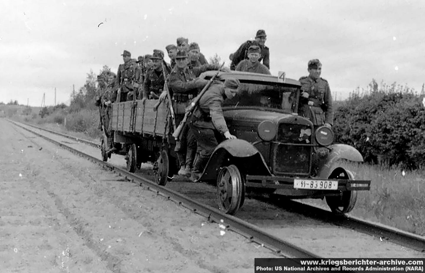 … Шло сражение на Курской дуге. В самой середине оборонительных рубежей Центрального фронта проходила линия обороны 65-й армии генерала П.И. Батова. И как назло, пути подвоза находились в плачевном состоянии, несмотря на все усилия дорожников. Но к тылам армии тянулась железнодорожная ветка. Немцы в свое время перешили ее на более узкую западноевропейскую колею. Кое-какие вагоны сохранились, а локомотива не было ни одного. И вот тогда-то родилась мысль — использовать в этой роли наши работящие грузовики ЗиС-5. Умельцы-ремонтники посовещались, прикинули и изготовили специальные металлические колеса-бандажи для движения по рельсам.